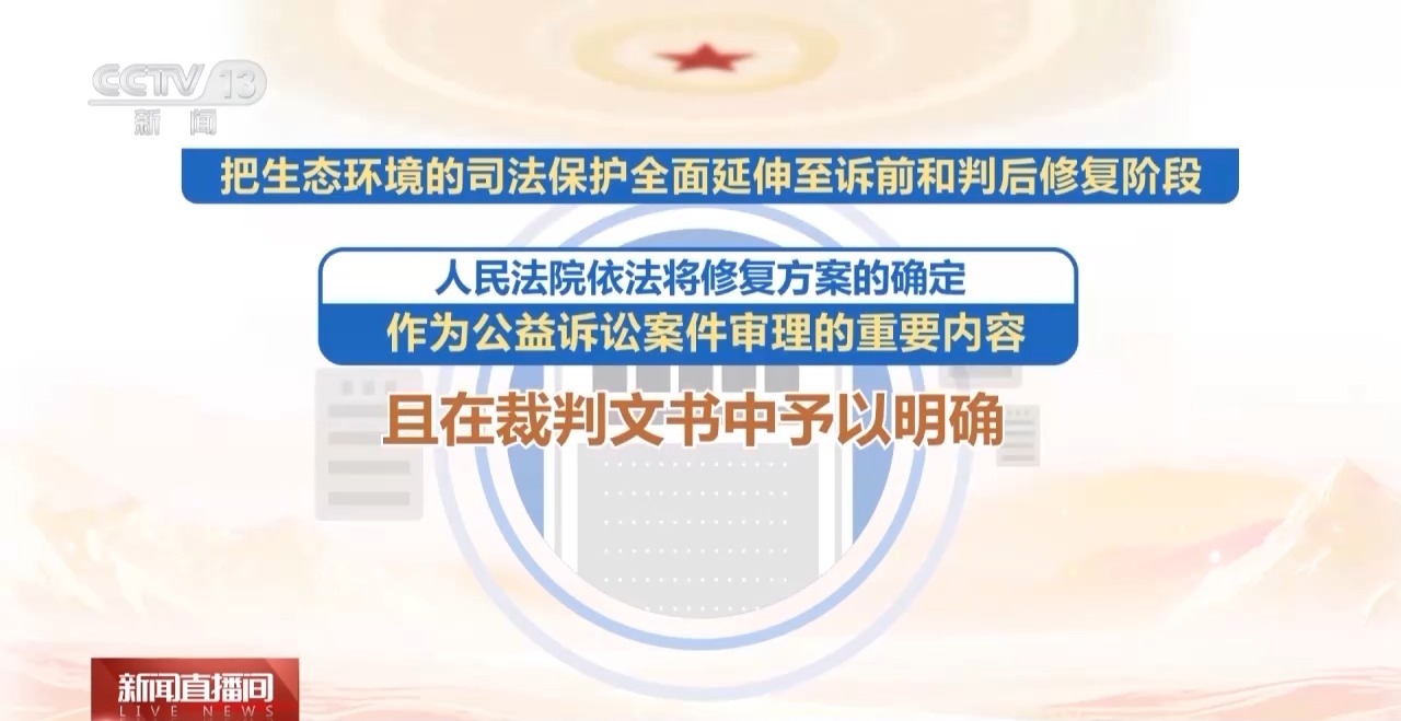 最高人民法院环境资源审判庭庭长 吴兆祥:人民法院根据生态环境损害的不同类型和案件具体情况,探索创新适用补植复绿、增殖放流、野化放归等修复方式,为不同类型生态系统提供相应的有效修复选项。同时,在自然保护区、自然或人文遗迹等重点区域,全国法院已经设立综合性生态环境司法保护修复地1300余个,使“看不见的正义”转化为人民群众“可感知的生态成果”。